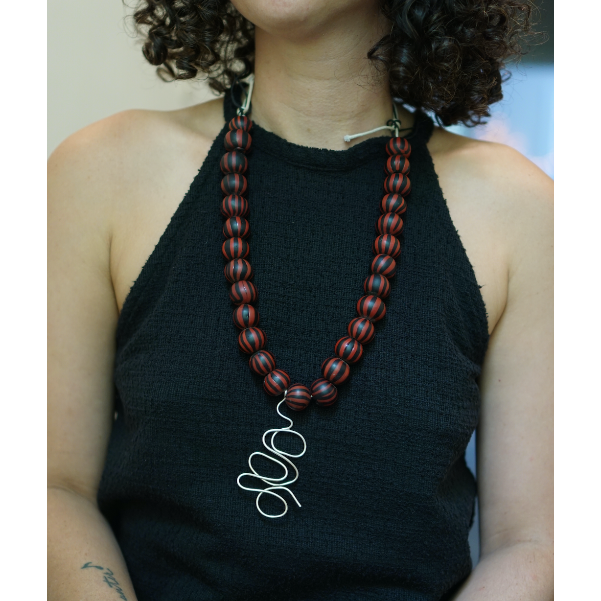You are a Statement was made with Satan Swirl Glass Powder Beads made in Ghana and a highly tarnish-resistant Argentium Silver one-of-a-kind Breath Piece Pendant.